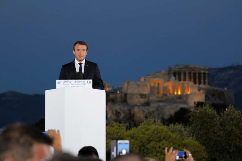 - © 2017 AFP | Crée le 08.09.2017 à 04h30 | Mis à jour le 08.09.2017 à 04h35ImprimerLe président français Emmanuel Macron s'exprime devant l'Acropole à Athènes, le 7 septembre 2017 LUDOVIC MARIN-AFP