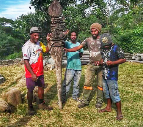 Ce mardi 16 juin, l’équipe de la SCA Xwâkâkê, dirigée par Constant Nemba, va remettre en place la belle flèche faîtière de la case du musée et installer les goélettes. Et Raymond Ai, petit chef de la tribu de Pothé, est venu rencontrer l’équipe la semaine dernière pour un geste coutumier.