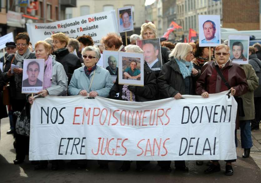 - © 2017 AFP | Crée le 11.08.2017 à 18h14 | Mis à jour le 11.08.2017 à 18h20ImprimerDes membres du collectif des veuves de l'amiante défilent, le 18 mars 2010 dans les rues de Dunkerque, pour protester contre les lenteurs administratives du traitement de leur dossier. DENIS CHARLET-AFP/Archives