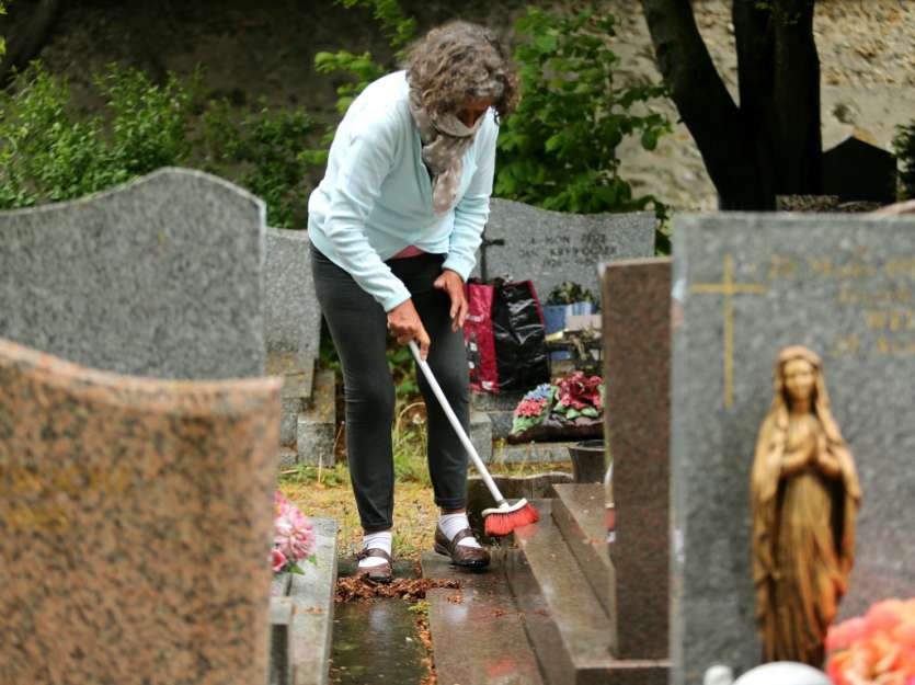 - © 2020 AFP | Crée le 29.04.2020 à 18h39 | Mis à jour le 29.04.2020 à 18h40ImprimerUne femme nettoie une tombe le 28 avril 2020 dans un cimetière de Reims qui vient de rouvrir FRANCOIS NASCIMBENI-AFP