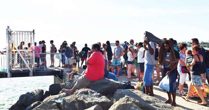 Mise à l'eau des Dauphins, ce dimanche, en fin d’après-midi. Piloté par Marc Negrello, du taxi-boat Casy Express, un bateau réquisitionné en navette maritime quitte le Vallon-Dore avec à bord une famille dont le bébé doit être hospitalisé ce lundi, deux jeunes de Yaté qui doivent reprendre l'internat à Nouméa et à Païta, un couple parti camper à la Netcha… (Photo F. T.)