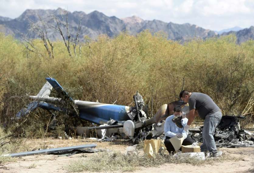 - © 2018 AFP | Crée le 25.04.2018 à 22h16 | Mis à jour le 25.04.2018 à 22h20ImprimerPhoto prise le 10 mars 2015 des hélicoptères détruits dans la collision qui a coûté le vie à dix personnes sur le tournage de l'émission "Dropped" près de Villa Castelli, dans la province de La Rioja, en Argentine Juan MABROMATA-AFP/Archives