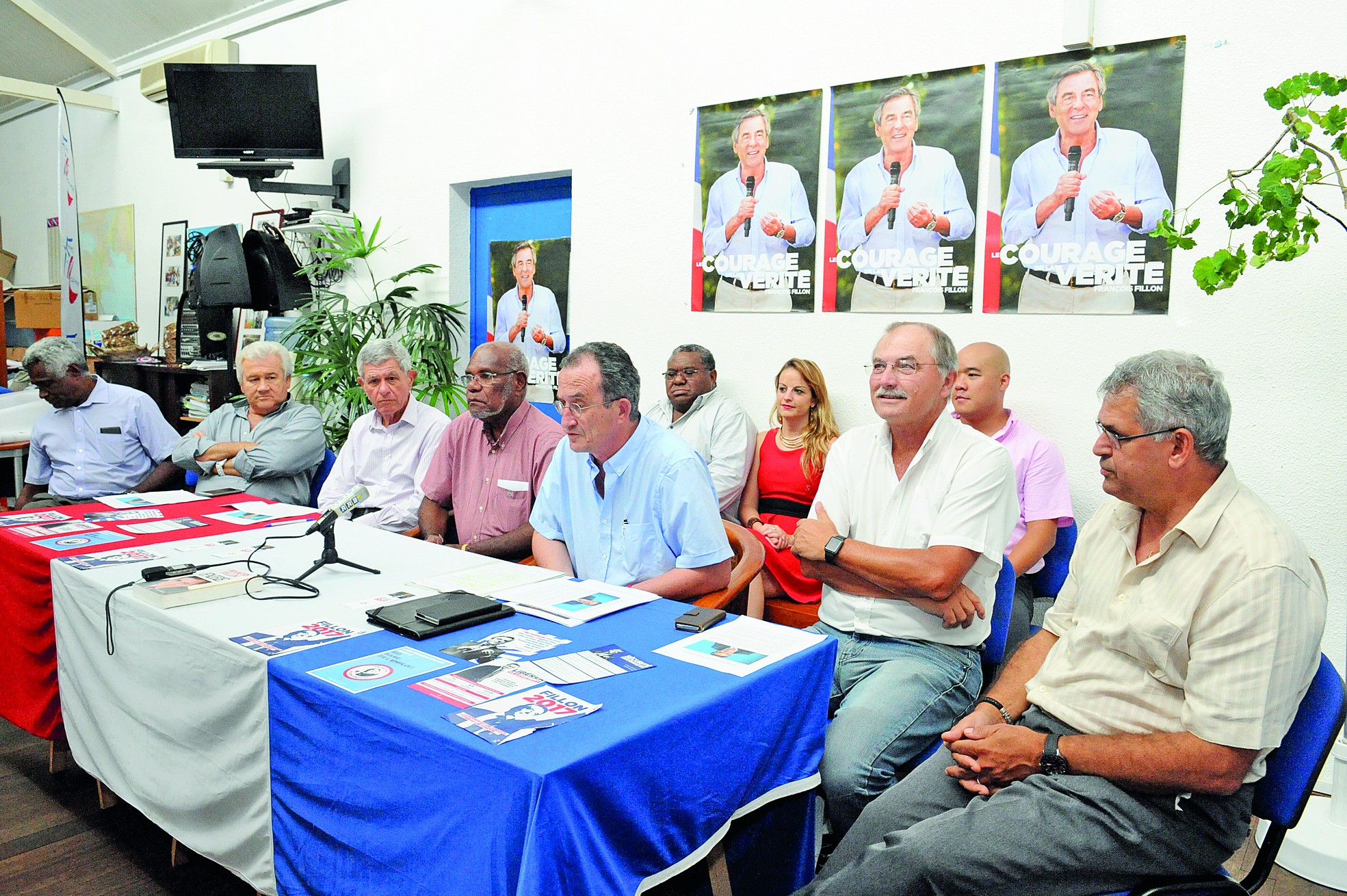 Le comité de soutien de François Fillon, dont les rangs ont été grossis par les partisans de Nicolas Sarkozy, s’exprimait cet après-midi à la permanence du Rassemblement - Les Républicains, à Nouméa. Bernard Deladrière (en bleu), s'est insurgé contre les « bassesses du camp Juppé », faisant notammment référence à la conférence de presse tenue ce matin par les soutiens calédoniens d'Alain Juppé.