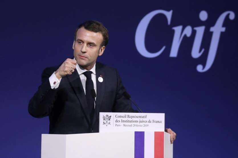 - © 2019 AFP | Crée le 21.02.2019 à 09h49 | Mis à jour le 21.02.2019 à 09h55ImprimerLe président Emmanuel Macron prononce un discours devant le Conseil représentatif des institutions juives de France (Crif), le 20 février 2019 à Paris LUDOVIC MARIN-POOL/AFP