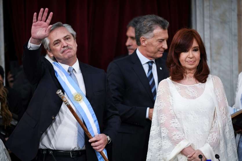 Après avoir prêté serment devant le Parlement, il a reçu l'écharpe présidentielle des mains de son prédécesseur, le libéral Mauricio Macri, au milieu des vivats des élus de sa coalition dans l’hémicycle et de ses supporters dans la rue.