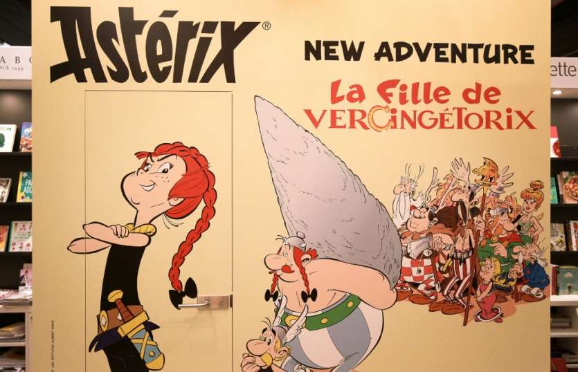 - © 2019 AFP | Crée le 24.10.2019 à 07h32 | Mis à jour le 24.10.2019 à 07h35ImprimerUne publicité pour la dernière aventure d'Astérix, "La fille de Vercingétorix", est affichée au salon du livre de Francfort le 17 octobre 2019 Daniel ROLAND-AFP/Archives