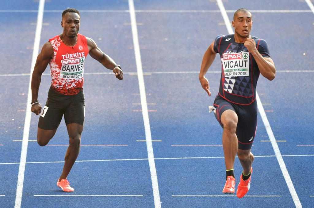 - © 2018 AFP | Crée le 08.08.2018 à 06h25 | Mis à jour le 08.08.2018 à 06h30ImprimerLe Français Jimmy Vicaut en demi-finales du 100 aux Championnats d'Europe, le 7 août 2018 à Berlin John MACDOUGALL-AFP