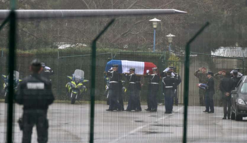 Le cercueil, recouvert d'un drapeau tricolore, du lieutenant-colonel Arnaud Beltrame, tombé en héros vendredi lors de l'attentat à Trèbes (Aude), a quitté Carcassonne à destination de l'aéroport de Villacoublay, en région parisienne, ont constaté des journalistes de l'AFP.