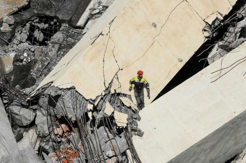 Dans un amas impressionnant de tôles et de béton, des centaines de secouristes fouillent les décombres du viaduc qui s'est effondré mardi à Gênes, à la recherche de survivants.