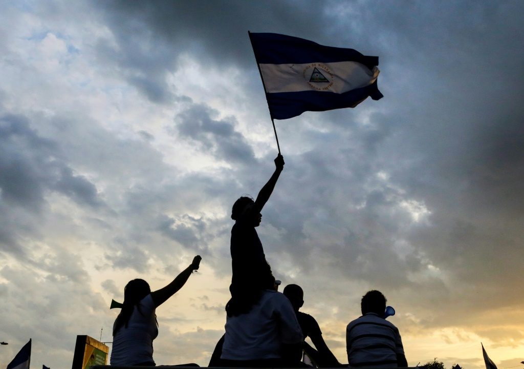 - © 2018 AFP | Crée le 16.05.2018 à 16h31 | Mis à jour le 16.05.2018 à 16h35ImprimerDes manifestants brandissent un drapeau du Nicaragua lors d'une manifestation contre le gouvernement, le 15 mai 2018 à Managua DIANA ULLOA-AFP