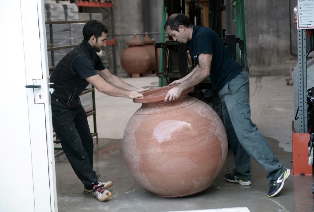 "La taille des dolia ne supporte pas la fabrication automatisée, il faut les fabriquer à la main", avec "la bonne argile, une argile plus pure que celle utilisée pour les pièces de décoration" par exemple.