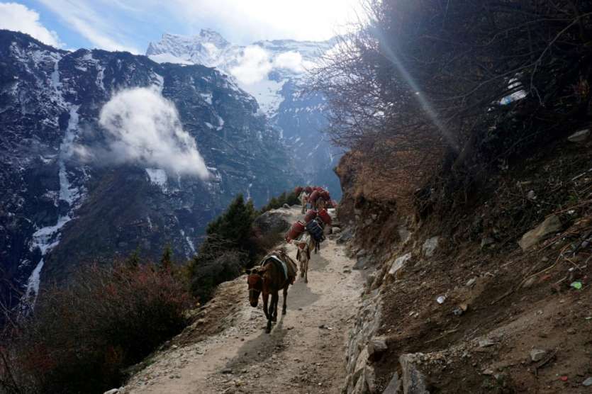 - © 2020 AFP | Crée le 02.04.2020 à 01h19 | Mis à jour le 02.04.2020 à 01h20ImprimerDes mules sur un sentier de l'Everest, le 24 mars 2020, au Népal PRAKASH MATHEMA-AFP
