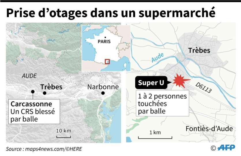 - © 2018 AFP | Crée le 23.03.2018 à 22h48 | Mis à jour le 23.03.2018 à 22h50ImprimerPrise d'otages Vincent LEFAI-AFP