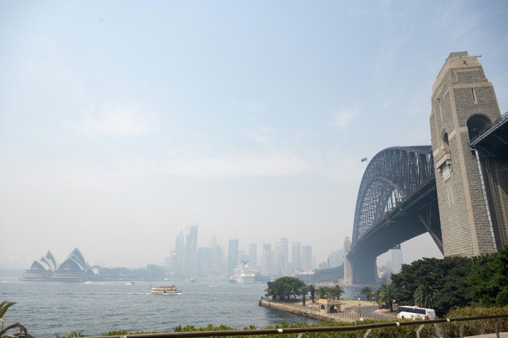 - © 2019 AFP | Crée le 19.12.2019 à 18h05 | Mis à jour le 19.12.2019 à 18h10ImprimerLa ville de Sydney dans un brouillard de fumée des feux de forêts, le 19 décembre 2019 en Australie Wendell TEODORO-AFP