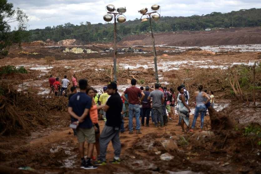 - © 2019 AFP | Crée le 28.01.2019 à 00h03 | Mis à jour le 28.01.2019 à 00h05ImprimerDes habitants contemplent l'étendue du désastre au lendemain de la rupture d'un barrage minier ayant fait au moins 37 morts et 300 disparus dans l'est du Brésil, le 26 janvier 2019. Douglas Magno-AFP