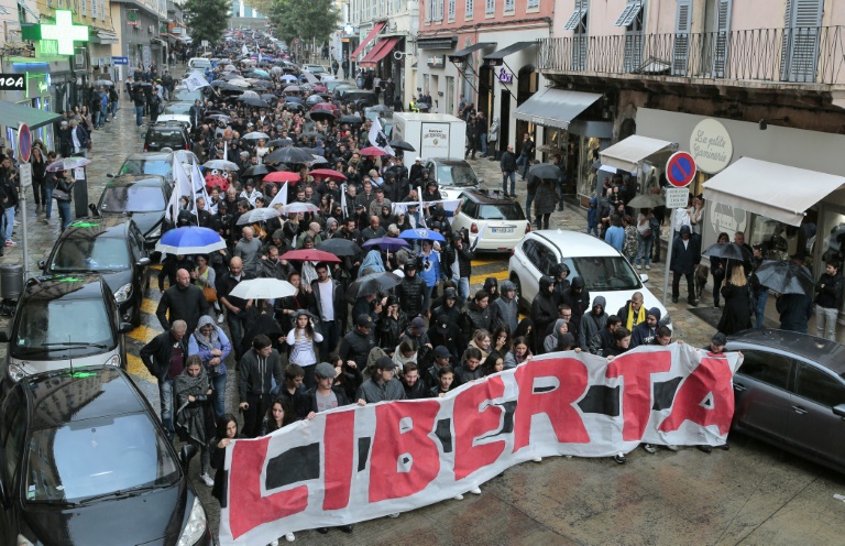 - © 2016 AFP | Crée le 16.10.2016 à 02h00 | Mis à jour le 16.10.2016 à 02h05ImprimerPlusieurs milliers de personnes ont manifesté, le 15 octobre 2016 à Bastia, pour dénoncer les condamnations de trois jeunes nationalistes