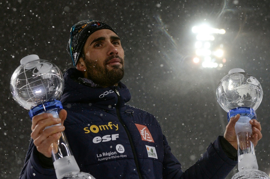 - © 2018 AFP | Crée le 25.03.2018 à 23h55 | Mis à jour le 26.03.2018 à 00h00ImprimerMartin Fourcade avec ses petits Globes du sprint et de l'Individuel après sa victoire sur le 10 km sprint, à Tioumen, le 22 mars 2018 STR-AFP/Archives