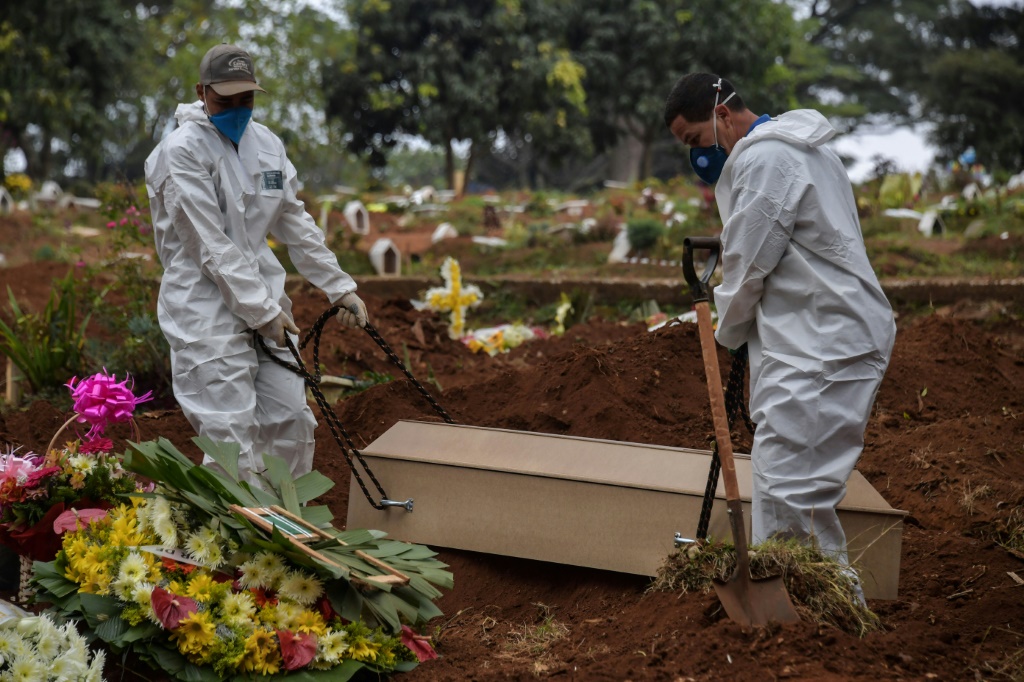 - © 2020 AFP | Crée le 22.05.2020 à 07h15 | Mis à jour le 22.05.2020 à 07h20ImprimerEnterrement d'un mort du Covid-19 au cimetière de Vila Formosa, près de Sao Paulo, au Brésil, le 20 mai 2020. NELSON ALMEIDA-AFP