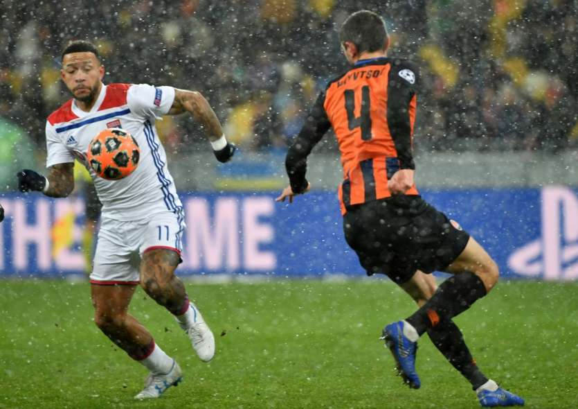 - © 2018 AFP | Crée le 13.12.2018 à 09h05 | Mis à jour le 13.12.2018 à 09h10ImprimerL'attaquant de Lyon Memphis Depay (g) face au défenseur du Shakhtar Donetsk Serhiy Kryvtsov en Ligue des champions, le 12 décembre 2018 à Kiev SERGEI SUPINSKY-AFP