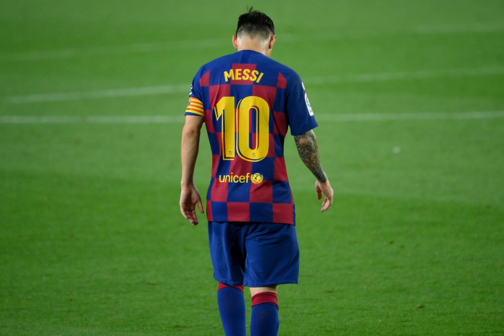 - © 2020 AFP | Crée le 08.08.2020 à 18h38 | Mis à jour le 08.08.2020 à 18h40ImprimerL'attaquant argentin de Barcelone, Lionel Messi, dépité après la défaite de son équipe lors du match de Liga à domicile face à Osasuna, le 16 juillet 2020 LLUIS GENE-AFP/Archives