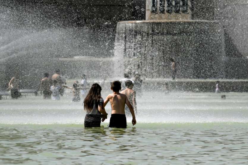 - © 2019 AFP | Crée le 23.07.2019 à 19h59 | Mis à jour le 23.07.2019 à 20h05ImprimerDes enfants se rafraîchissent dans les bassins de la fontaine du Trocadéro lors d'un épisode de fortes chaleurs, le 22 juillet 2019 à Paris ALAIN JOCARD-AFP