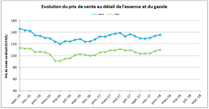 Le prix des carburants est calculé en fonction du cours du baril à Singapour, du prix du transport vers le Caillou et du taux de change avec le dollar américain avec un décalage de trois mois suivant la répercussion de la variation des cours.