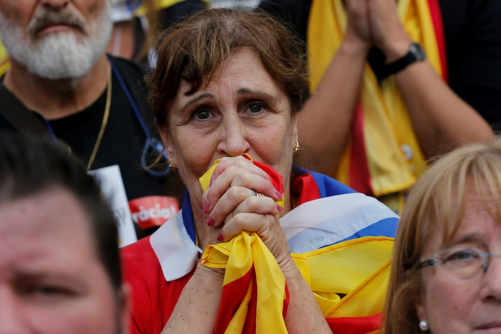 - © 2017 AFP | Crée le 28.10.2017 à 16h55 | Mis à jour le 28.10.2017 à 17h00ImprimerUne femme attend à l'extérieur du Parlement catalan le résultat d'un vote sur l'indépendance de la région, à Barcelone, le 27 octobre 2017 PAU BARRENA-AFP