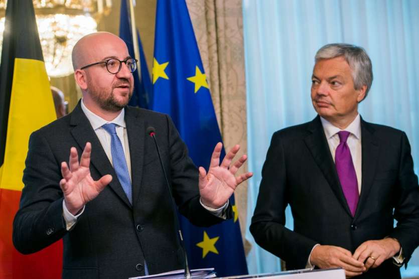 - © 2016 AFP | Crée le 25.10.2016 à 00h42 | Mis à jour le 25.10.2016 à 00h45ImprimerLe Premier ministre belge Charles Michel (G), avec son ministre des Affaires étrangères Didier Reynders (D), lors d'une conférence de presse à l'issue d'une réunion d'urgence avec les représentants des entités fédérées de Belgique sur le CETA le 24 octobre 2016 LAURIE DIEFFEMBACQ-BELGA/AFP
