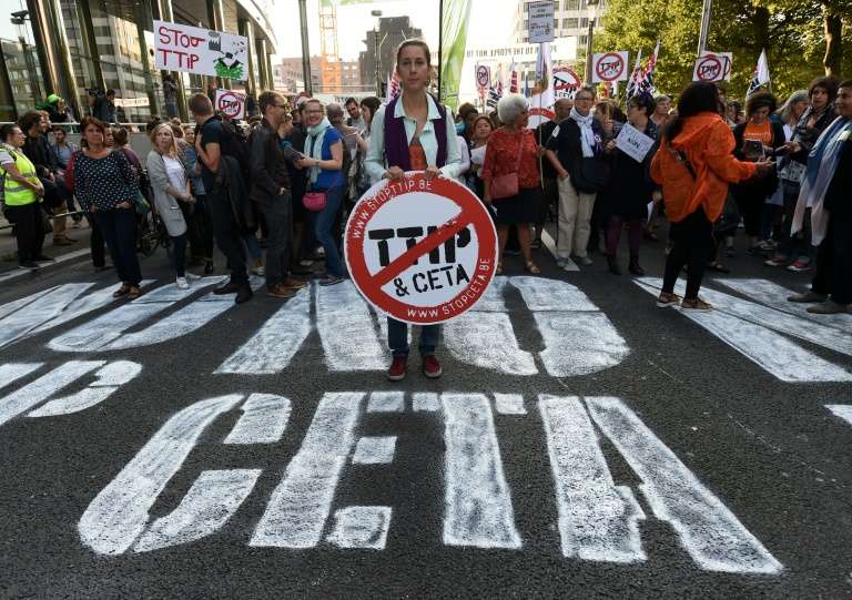 - © 2016 AFP | Crée le 13.10.2016 à 21h40 | Mis à jour le 13.10.2016 à 21h45ImprimerManifestation contre le TTIP et le Ceta, un accord conclu avec le Canada, devant le siège des institutions européennes à Bruxelles, le 20 septembre 2016