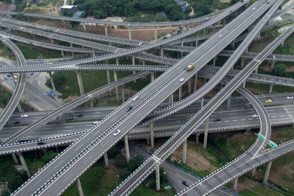 Des bretelles sur cinq niveaux, des voitures dans toutes les directions: un nouvel échangeur routier affole les automobilistes chinois, perturbés par ce géant aux allures de plat de spaghetti en béton.