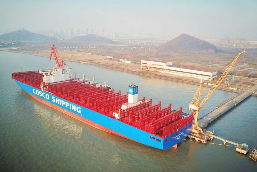 - © 2018 AFP | Crée le 18.01.2018 à 20h13 | Mis à jour le 18.01.2018 à 20h15ImprimerVue aérienne d'un porte-conteneur chinois de 20.000 EVP (equivalents vingt pieds), à Nantong (province du Jiangsu), le 16 janvier 2018 --AFP