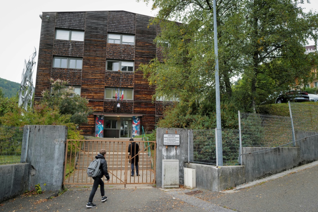 - © 2019 AFP | Crée le 04.10.2019 à 23h32 | Mis à jour le 04.10.2019 à 23h35ImprimerL'entrée du collège Pierre-Hyacinthe Cazeaux à Morez (Jura), le 4 octobre 2019 SEBASTIEN BOZON-AFP
