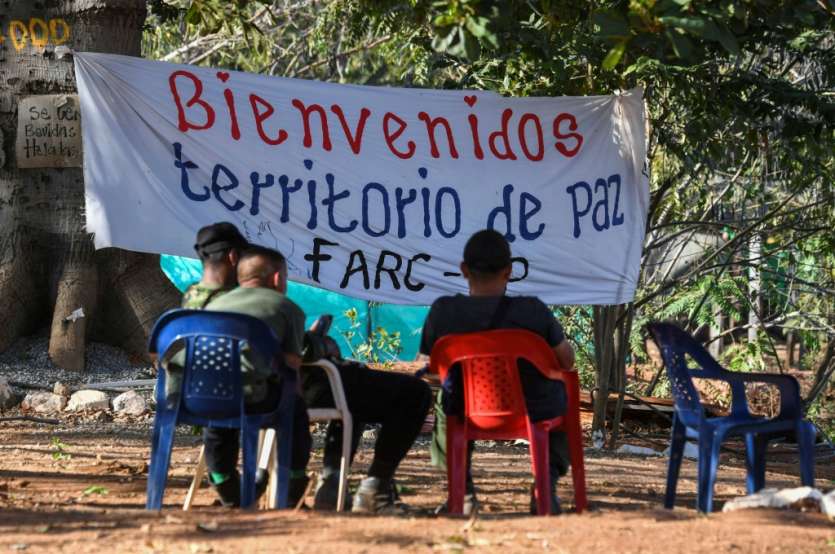 - © 2017 AFP | Crée le 01.03.2017 à 14h21 | Mis à jour le 01.03.2017 à 14h25ImprimerDes membres des Farc à l'entrée d'une zone où les guérilleros doivent se rassembler pour déposer les armes, le 28 février à San Jose de Oriente dans le nord de la Colombie le 28 février 2017 Luis Acosta-AFP
