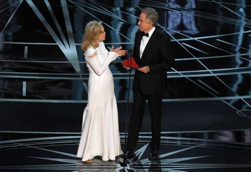 - © 2017 AFP | Crée le 27.02.2017 à 20h39 | Mis à jour le 27.02.2017 à 20h40ImprimerFaye Dunaway et Warren Beatty sur le point d'annoncer l'Oscar du meilleur film le 26 février 2017 à Hollywood en Californie Mark RALSTON-AFP