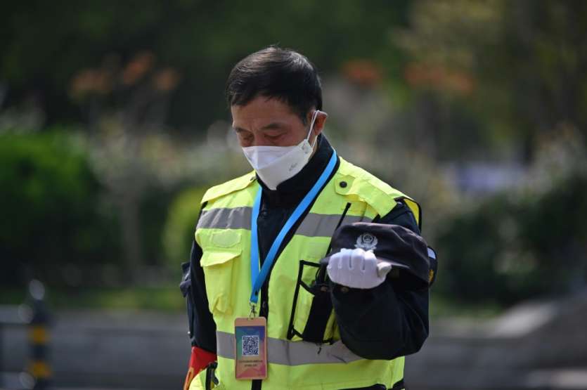 - © 2020 AFP | Crée le 05.04.2020 à 06h59 | Mis à jour le 05.04.2020 à 07h00ImprimerUn policier se fige lors des 3 minutes de silence en mémoire des morts du Covid-19, le 4 avril 2020 à Wuhan HECTOR RETAMAL-AFP