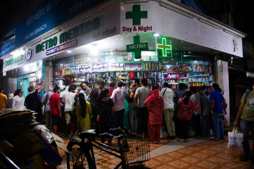 - © 2020 AFP | Crée le 25.03.2020 à 15h50 | Mis à jour le 25.03.2020 à 16h23ImprimerFile d'attente devant une pharmacie de Bombay (Inde), le 24 mars 2020 Indranil MUKHERJEE-AFP