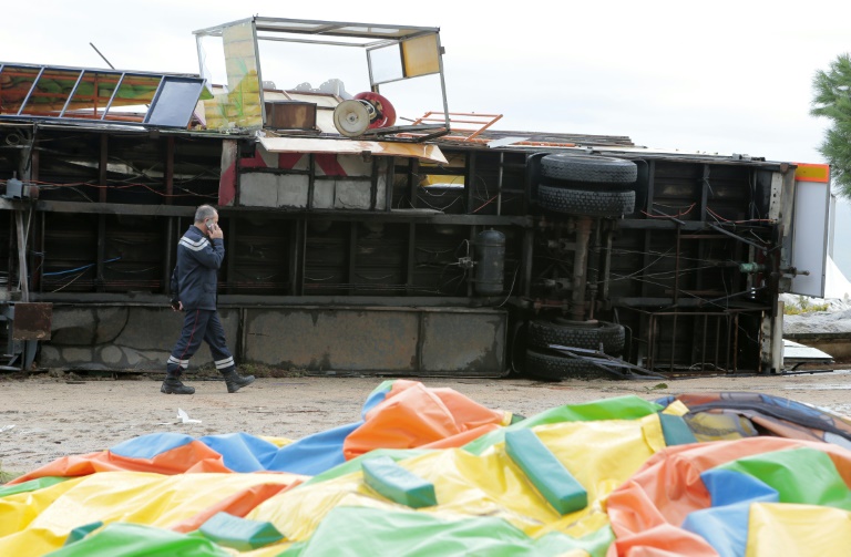 - © 2016 AFP | Crée le 15.10.2016 à 01h22 | Mis à jour le 15.10.2016 à 01h25ImprimerUn chapiteau emporté par une mini-tornade à Ajaccio, le 14 octobre 2016