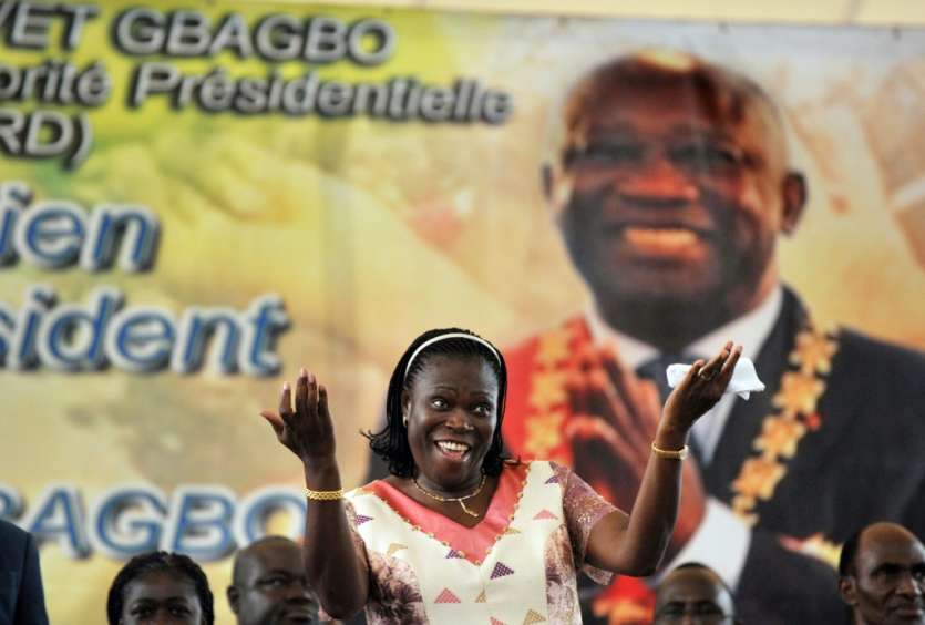 - © 2018 AFP | Crée le 08.08.2018 à 02h01 | Mis à jour le 08.08.2018 à 02h05ImprimerSimone Gbagbo, le 15 janvier 2011, danse devant un portrait de son mari, le président ivoirien Laurent Gbagbo, lors d'un meeting électoral à Abidjan. Issouf SANOGO-AFP/Archives