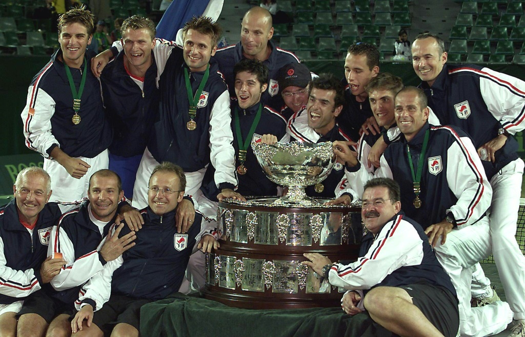 - © 2017 AFP | Crée le 20.11.2017 à 20h32 | Mis à jour le 20.11.2017 à 20h35ImprimerL'équipe de France victorieuse de la Coupe Davis, le 2 décembre 2001 à Melbourne GREG WOOD-AFP/Archives