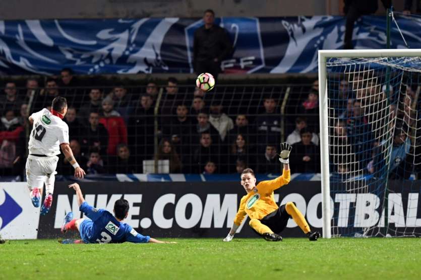 - © 2017 AFP | Crée le 03.03.2017 à 09h04 | Mis à jour le 03.03.2017 à 09h05ImprimerLe Lillois Rony Lopes inscrit un but contre Bergerac en Coupe de France, le 2 mars 2017 à Libourne MEHDI FEDOUACH-AFP