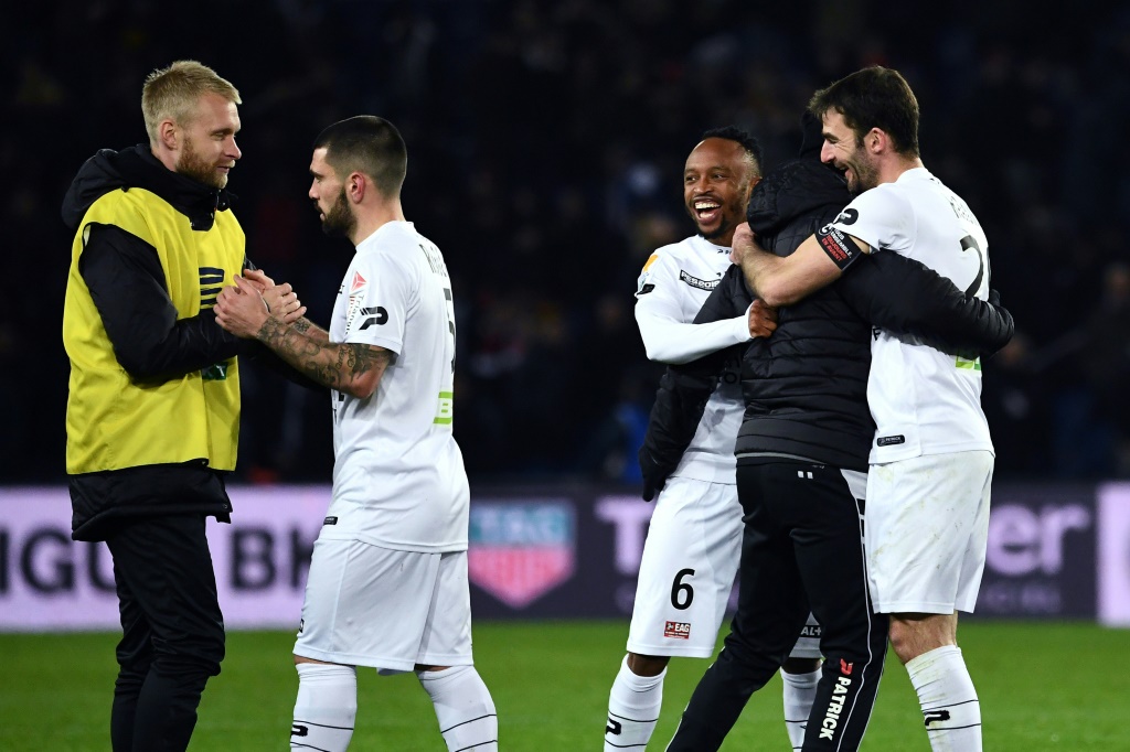 - © 2019 AFP | Crée le 11.01.2019 à 07h29 | Mis à jour le 11.01.2019 à 07h30ImprimerLa joie des joueurs de Guingamp à l'issue de leur victoire sur le PSG au Parc des Princes, le 9 janvier 2019 Anne-Christine POUJOULAT-AFP