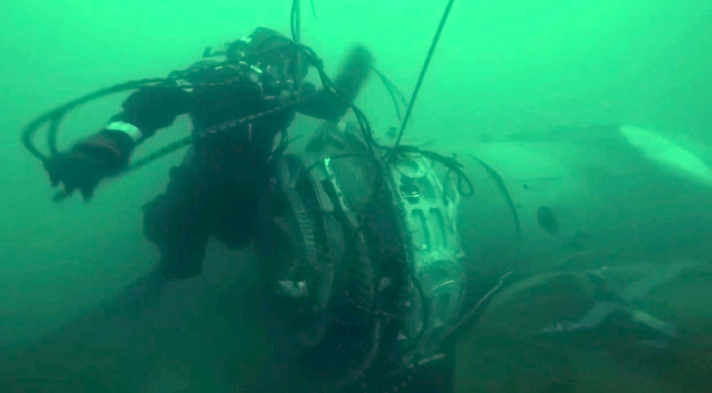 - © 2016 AFP | Crée le 28.12.2016 à 21h14 | Mis à jour le 28.12.2016 à 21h15ImprimerPhoto fournie le 28 décembre 2016 par les autorités russes d'un plongeur récupérant des débris du Tupolev qui s'est abimé en mer Noire au large de Sotchi HO-RUSSIAN EMERGENCY MINISTRY/AFP