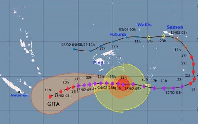 Dans son bulletin quotidien émis il y a quelques minutes, Météo France NC indique que la trajectoire du cyclone Gita est confirmée