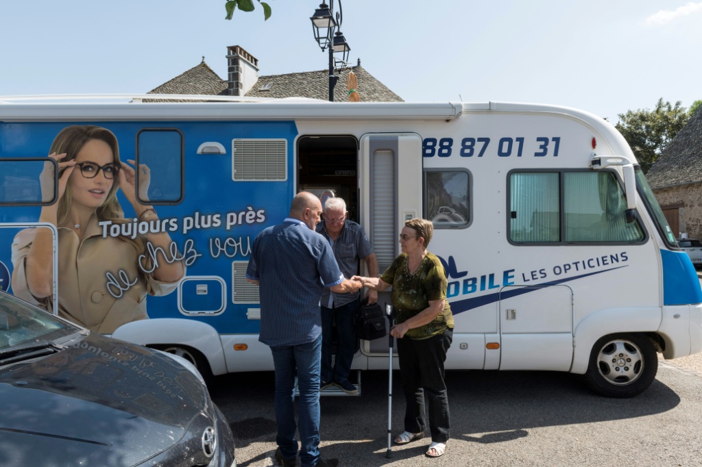 - © 2019 AFP | Crée le 03.08.2019 à 23h23 | Mis à jour le 03.08.2019 à 23h25ImprimerYves Thevenoux (G), un opticien itinérant du Cantal, accueille des patients le 24 juillet 2019 à Montsalvy Thierry Zoccolan-AFP