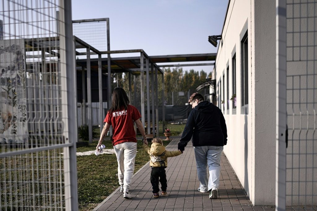 - © 2017 AFP | Crée le 09.11.2017 à 22h52 | Mis à jour le 09.11.2017 à 22h55ImprimerUne éducatrice (g) tient la main d'un enfant à l'extérieur de la crèche de la prison de Bollate, le 12 octobre 2017 à Milan MARCO BERTORELLO-AFP