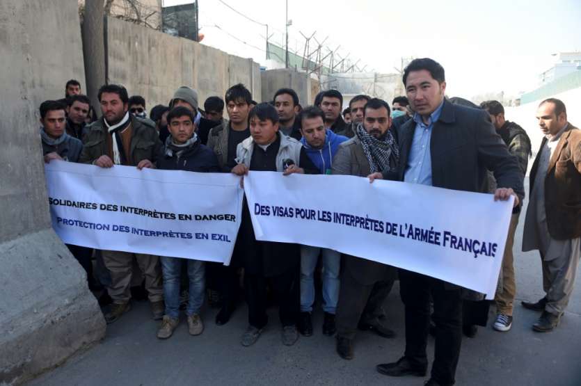 - © 2017 AFP | Crée le 11.01.2017 à 06h13 | Mis à jour le 11.01.2017 à 06h15ImprimerD'anciens interprètes afghans de l'armée française lors d'une manifestation devant l'ambassade de France à Kaboul, le 10 janvier 2017. WAKIL KOHSAR-AFP