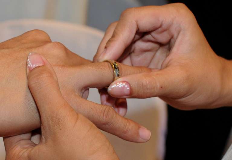 En 2014 par rapport à 2010, le risque de divorcer a reculé pour toutes les durées de mariage. Aujourd'hui comme depuis les années 70, il est maximal à cinq ans de mariage: pour 1.000 mariages célébrés en 2009, 24,6 ont été rompus par un divorce en 2014.