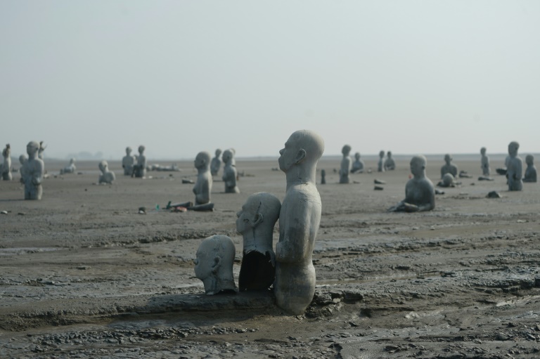 - © 2016 AFP | Crée le 17.05.2016 à 16h01 | Mis à jour le 17.05.2016 à 16h05ImprimerVue en date du 28 mars 2016 de sculptures de personnes à moitié enterrées dans le volcan de boue qui a surgi de terre le 29 mai 2006 à Sidoarjo