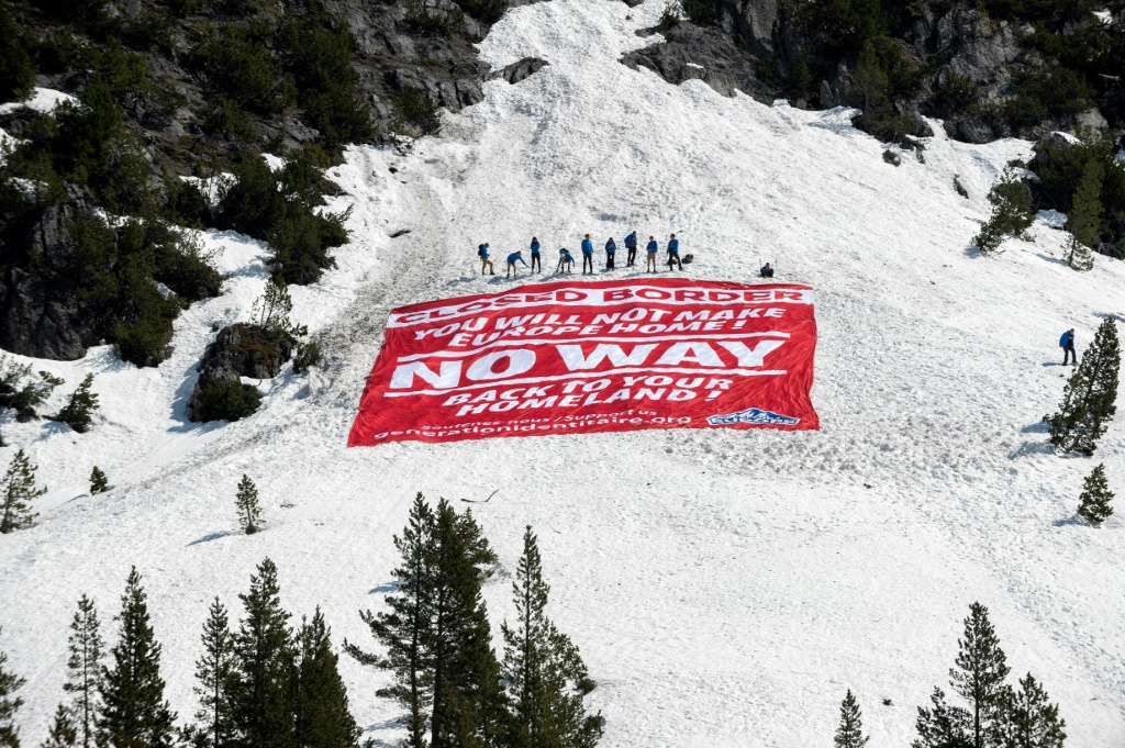 Une banderole géante, déployée à flanc de montagne, relaie ce message en anglais. Et si certains migrants devaient passer outre, "nous appellerions la gendarmerie (...). La justice fera après son travail", a assuré Romain Espino.