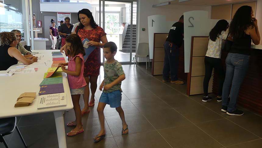 [10h30] Au Mont-Dore, le bureau de vote n° 5 situé à l’école la Rizière 1, à Saint-Louis, devient le premier bureau en nombre de la commune avec 993 électeurs, devant celui de Saint-Joseph-de-Cluny, à la Conception (984), qui en comptait 1 039 avant le rééquilibrage. A 9 h 30, 92 électeurs étaient déjà venus voter, pour certains avant la messe.